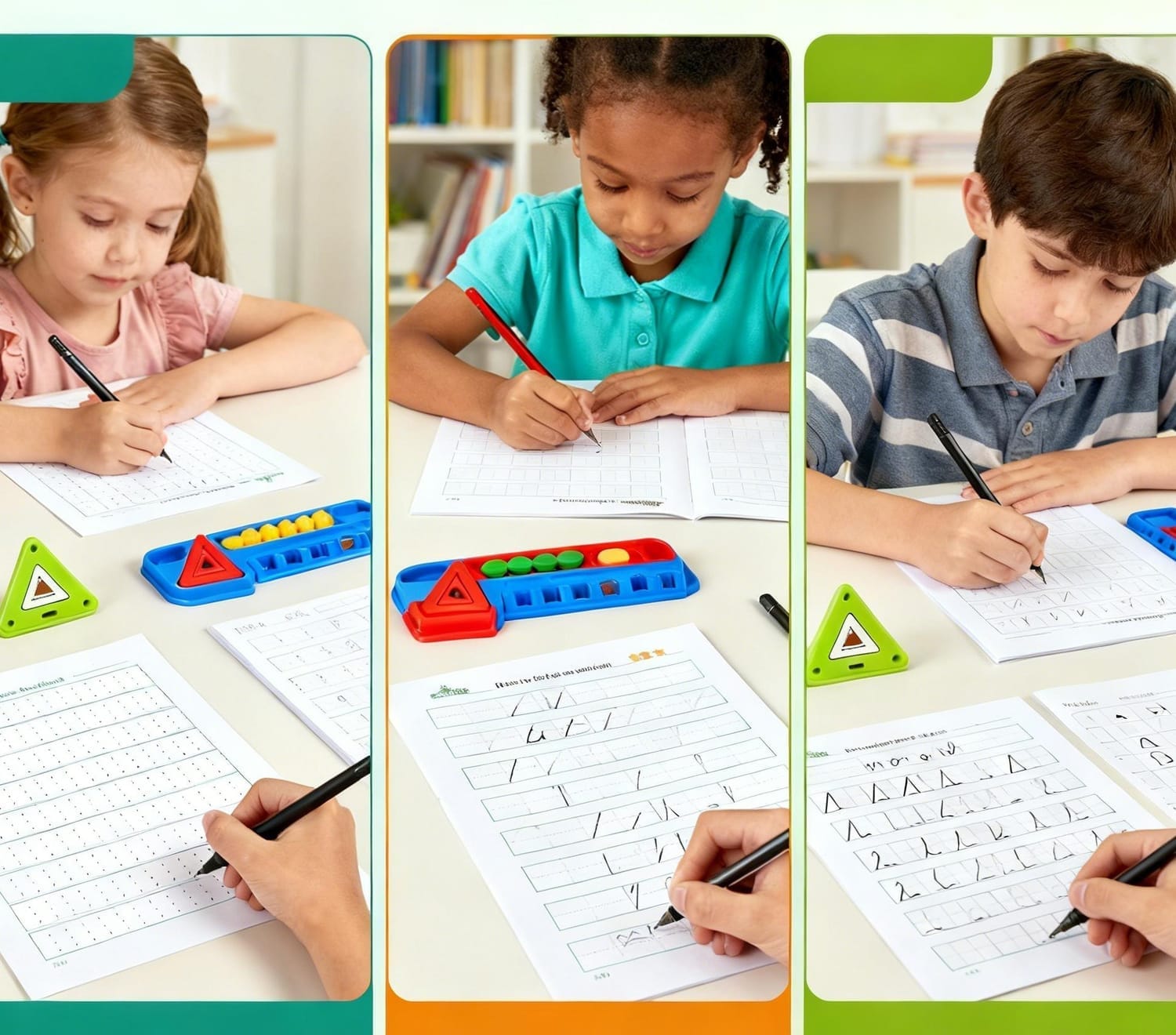 Ages 4-6: 3-finger positioning guides + line/curve practice → Writing goes from “squiggles” to neat letters (teachers will notice!)